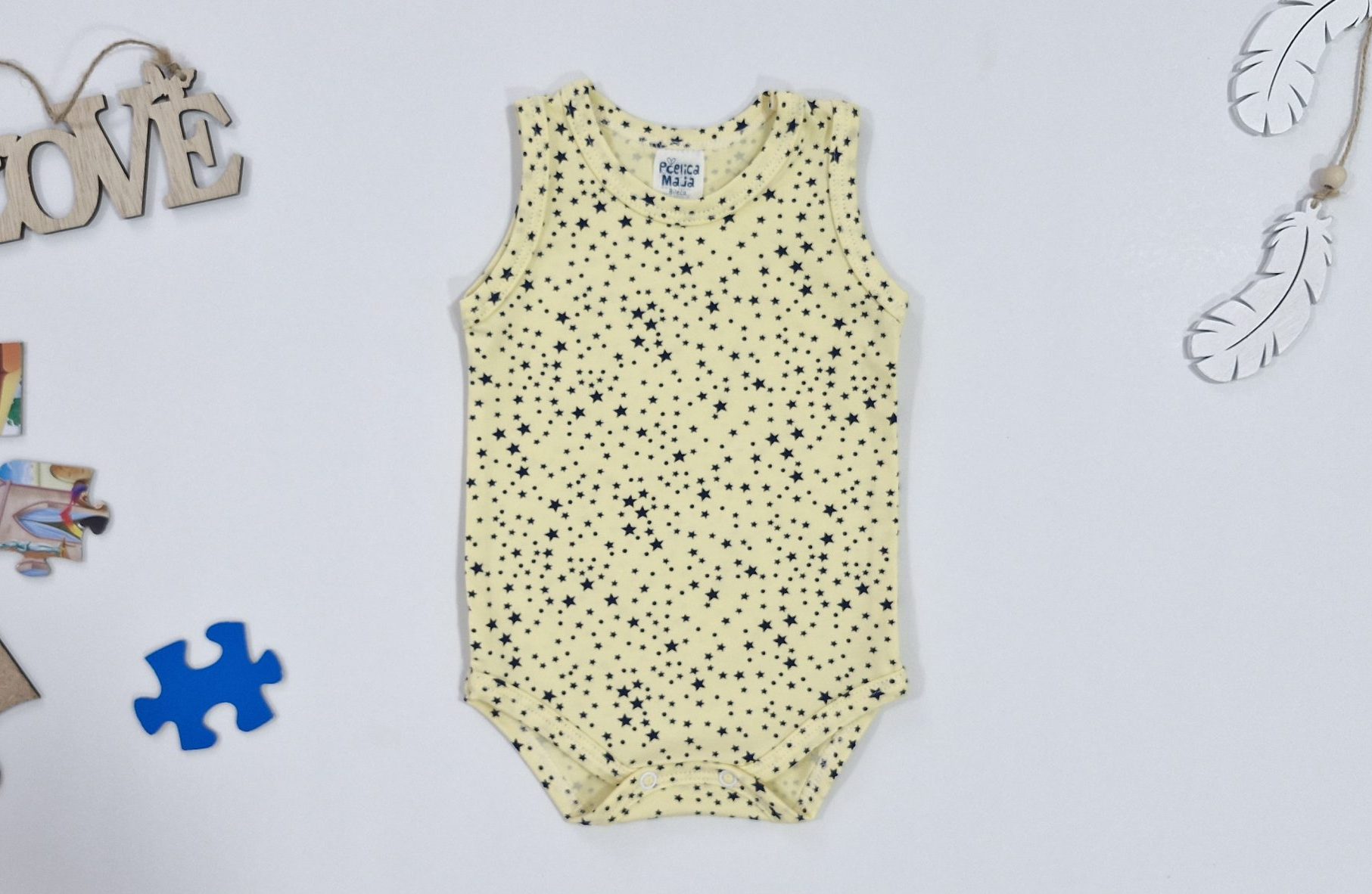 Bebi bodići su rađeni od 95% pamuka i 5% elastina, sa drikerima bez nikla. Mekani, nježni, udobni a pored svega su i praktičan komad garderobe. Pružaju osjećaj sigurnosti bebinoj osjetljivoj koži. Šiveni od dezeniranog platna u više dezena i boja.