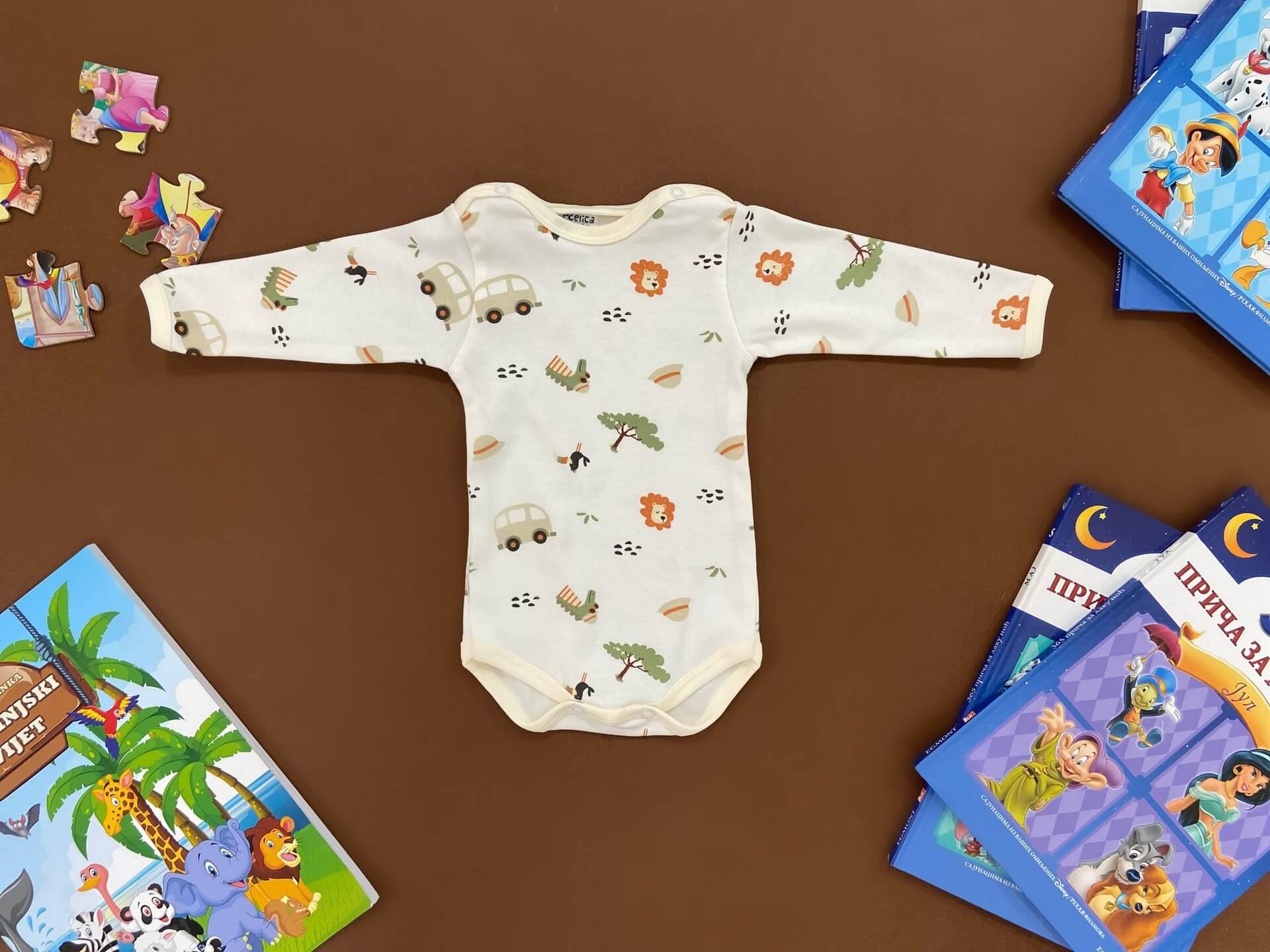Prepustite se safari avanturi sa ovim unikatnim bebi bodijem, ukrašenim razigranim printom lavova, krokodila i simpatičnih vozila. Savršen za male znatiželjnike, bodi je izrađen od čistog pamuka, pružajući udobnost, prozračnost i sigurnost u svakom trenutku. Drikeri bez nikla i dugi rukavi čine ga idealnim za svakodnevno nošenje, dok topli tonovi i zanimljivi motivi unose maštovitost u bebinu garderobu.